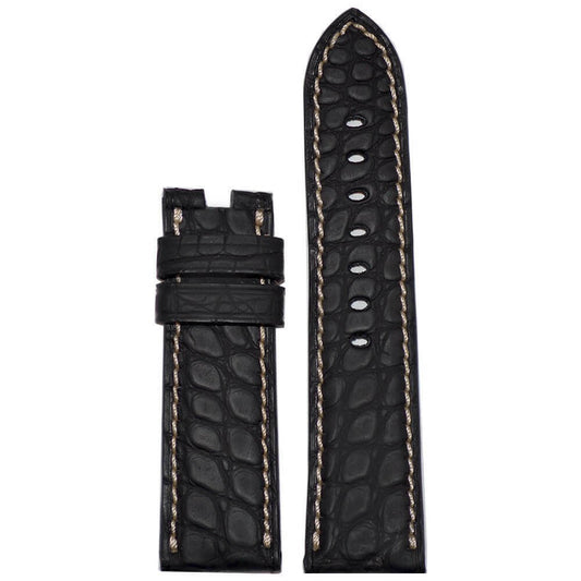 • Padded Alligator Watch Band | Black | Full Cut | Rubberized Coating | For Panerai Deploy